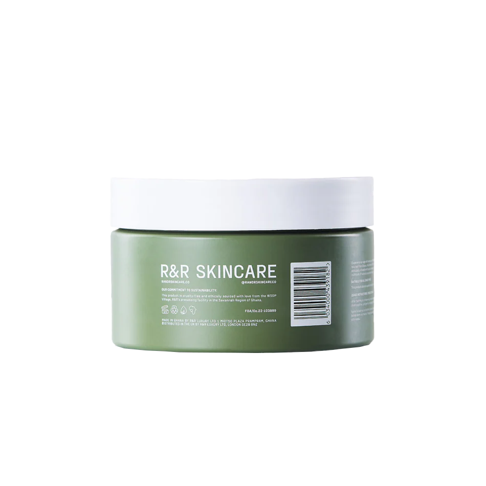 Découvrez un remède ancestral avec le beurre corporel fouetté au karité R&R, provenant du Ghana, la patrie du karité.