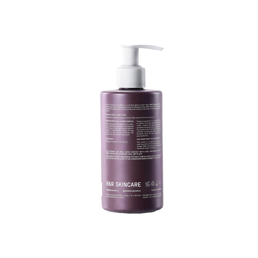 Hydratez votre peau et offrez-lui un éclat lumineux. L’huile corporelle au karité R&R est soigneusement sélectionnée au Ghana et composée à 99-100 % d’huile de karité. Cet ingrédient magique regorge d’acides gras et de vitamines qui nourrissent et hydratent la peau.